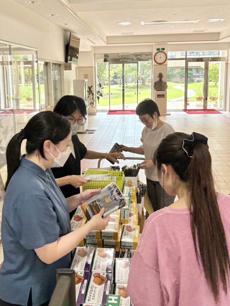 2025.10.01 災害備蓄用食品を配布しました お知らせ 10月1日(水)賞味期限に伴う入れ替えのため、備蓄用食品と連携協定を結んでいる台湾の樹人醫護管理專科學校よりご寄付いただいたマスクを配布しました。 鹿児島県栄養士会災害支援チームのスタッフとして、災害栄養に関する普及活動に参加する本学食物栄養学専攻の改元香准教授指導の下、「災害食に関する案内」も添え、災害に備える心構えと準備の大切さを知る機会となりました。