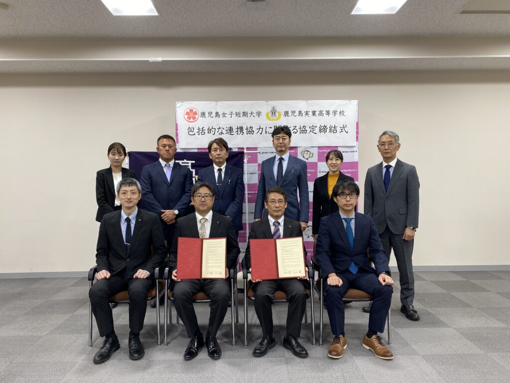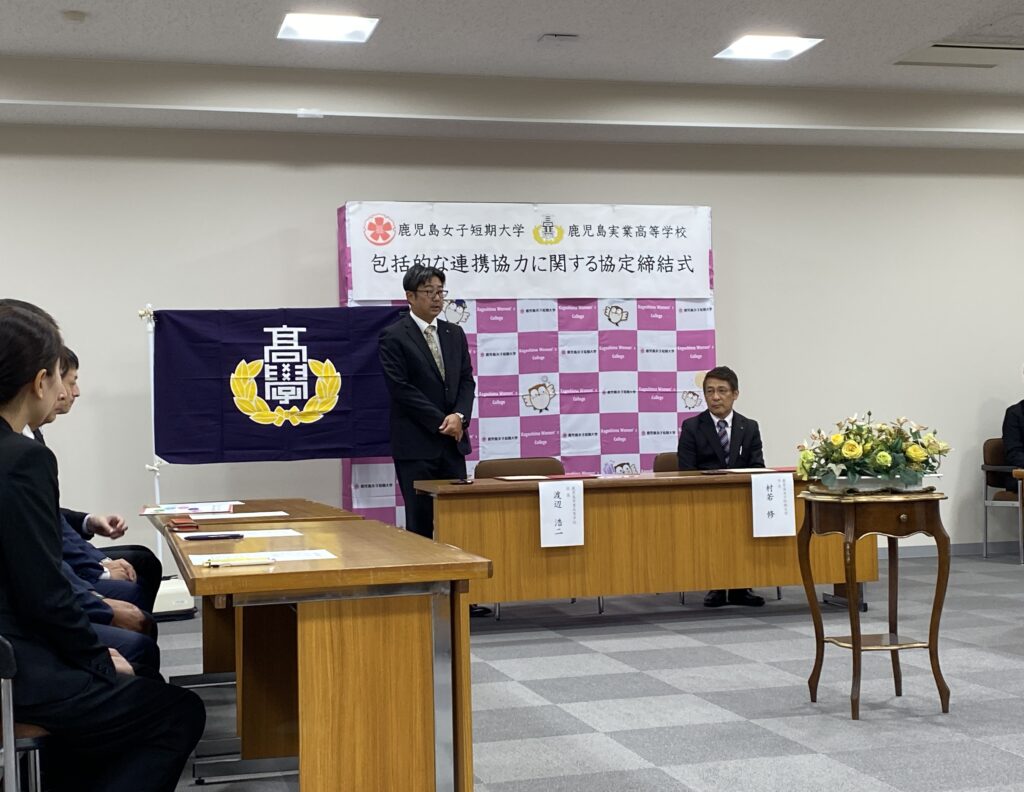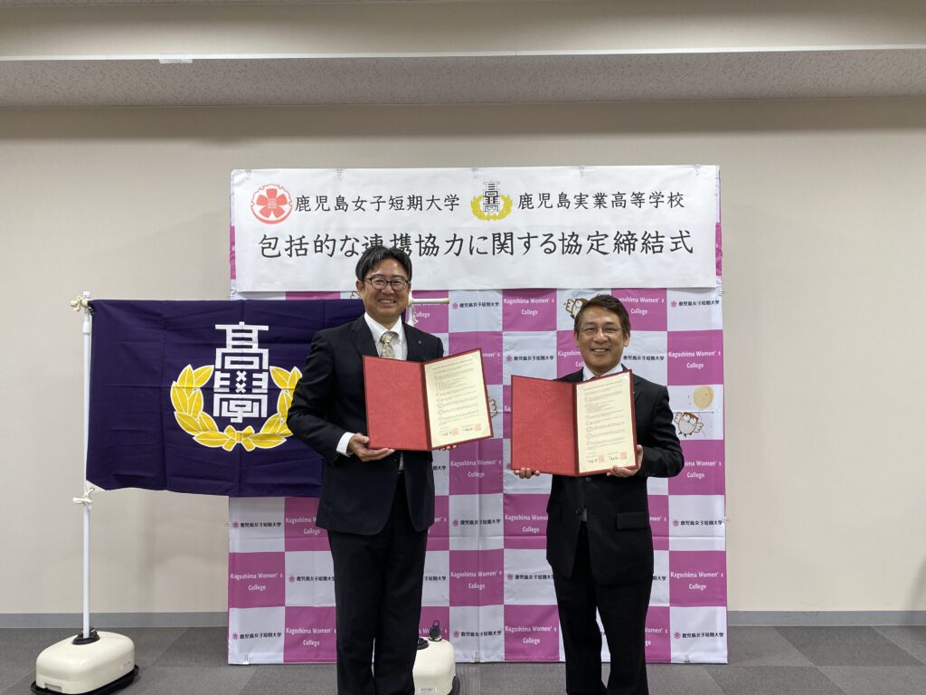 本学と鹿児島実業高等学校は、包括的な連携のもと、相互の資源や機能等を活用しつつ、教育・研究の分野で協力することにより、学校教育の振興、地域社会の発展及び人材教育の強化に寄与することを目的に令和7年10月21日(火)「鹿児島女子短期大学と鹿児島実業高等学校との包括的な連携協力に関する協定書」を締結しました。