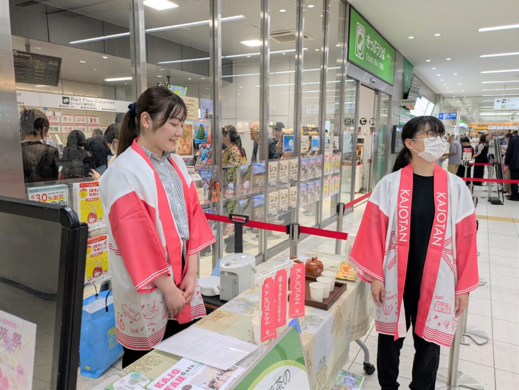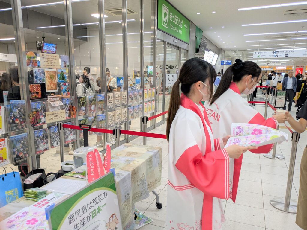 10月12日(日)JR鹿児島中央駅みどりの窓口前にて、本学の広報メディアサークルが、JA鹿児島県中央会の県内短期大学への活動支援企画を利用した地域連携活動を行いました。