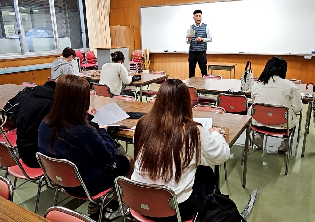 2025.11.13 大学編入学試験説明会 キャリア 4年生大学への編入学を希望する1年生を対象に、編入学説明会を実施しました。資料をもとに様々な大学の編入学試験情報を検索し、受験に関する相談窓口や特別指導等についての説明が行われました。