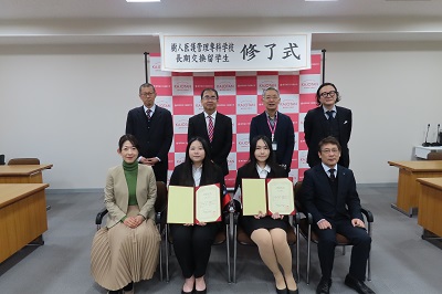 2月5日(木)、本学との交流協定校である台湾の樹人医護管理専科学校からの交換留学生の修了式が行われました。令和7年度は2名の留学生が在籍し、このたび修了の日を迎えました。
