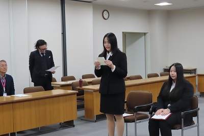 式では、村若学長より修了証書が手渡され、これまでの努力をたたえる言葉が贈られました。また、留学生が挨拶に立ち、日本での学びや生活を振り返りながら、支えてくれた教職員や友人への感謝の気持ちを述べました。