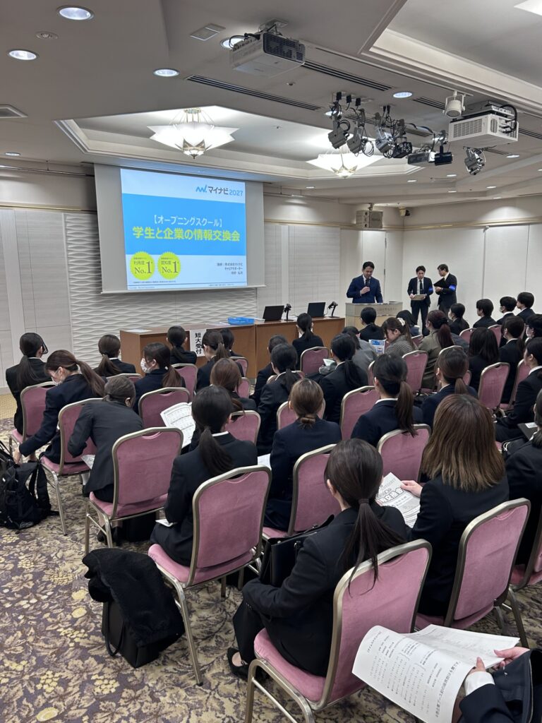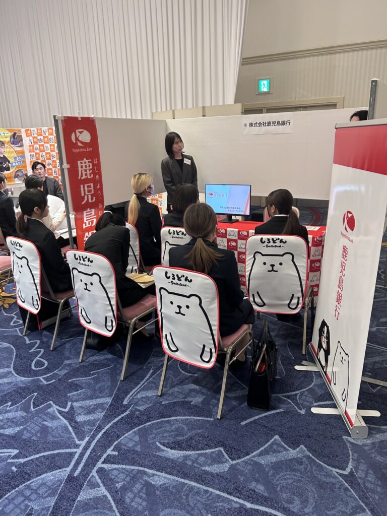 2026.02.16 学生と企業の情報交換会に参加しました! お知らせキャリア 令和8年2月13日(金)に鹿児島サンロイヤルホテルにて実施された「志學館大学主催 学生と企業の情報交換会」に本学学生54名が参加しました。 ご参加いただいた計82事業所様より事業や仕事内容等についてお話をいただきました。 これから就職活動をスタートする学生にとっては、就活方法や様々な業種に目を向け進路選択の幅を広げられるとても貴重な機会となりました。
