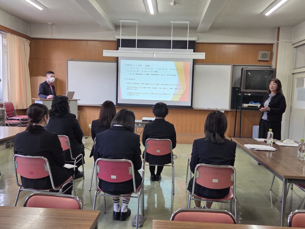 1年生対象進路支援行事「業界研究」は、就職活動を控えた1年生を対象に毎年実施されています。県内の企業の人事担当者から、企業や業界の現状、求められる人材像についてお話を伺いました。これからの業界研究や就職活動、また2年生になってからの専門的な学びや実習に向けた意識を高める良い機会となりました。ご講話いただいた皆様に感謝申し上げます。