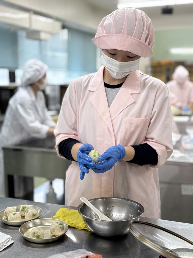 学内では、スポーツ栄養ゼミの学生たちが複数回にわたって試作を行いました。
